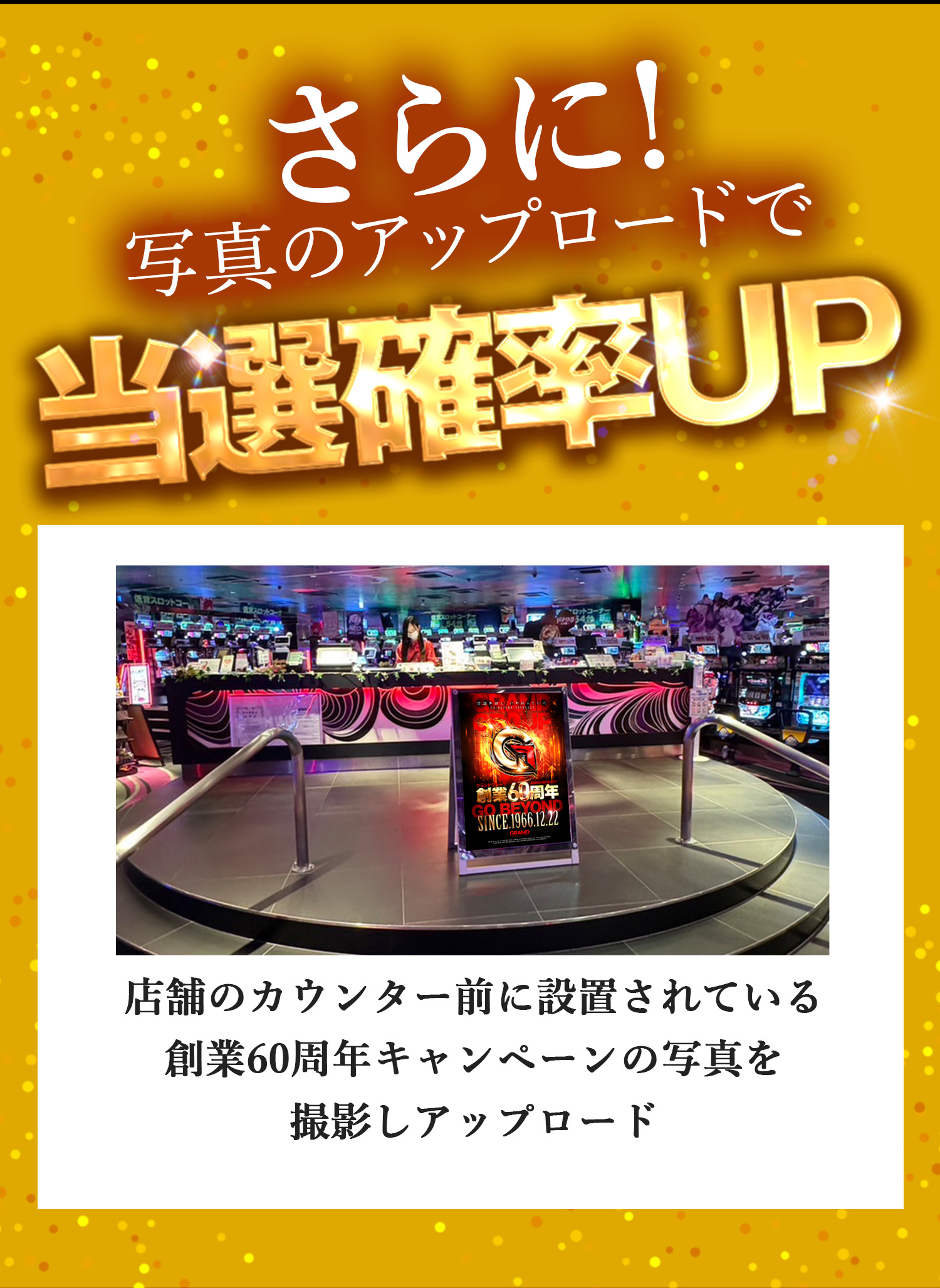 ・当選確率アップのための、各店舗カウンター前設置ポスター写真のアップロードは、複数回可能ですが、1日あたり1回限り有効です。